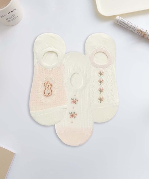 靴下ガーリーデザインコットン混カバーソックス レディース